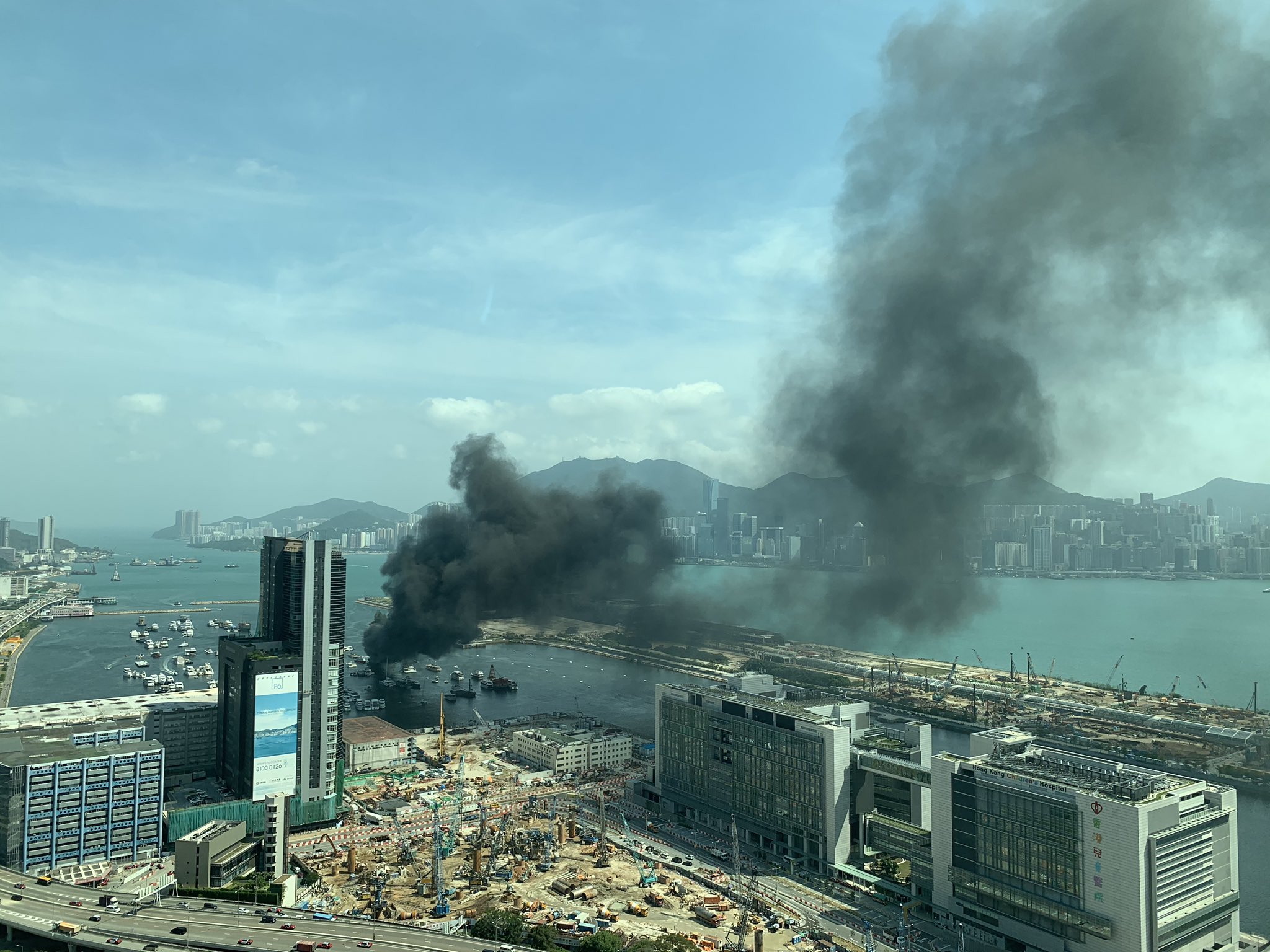 📍Fire can be seen in a Typhoon shelter in #Hongkong . Heavy damage has been reported many ships sank bcs. Of fire. pic.twitter.com/aBTtkjTv8g