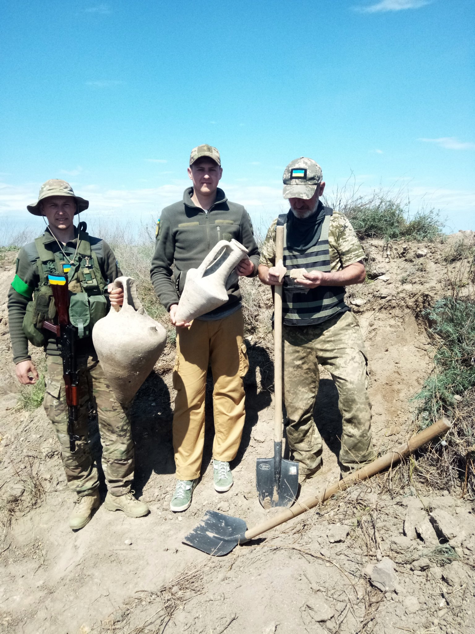 Одесская бригада Сил Терробороны нашла древние амфоры во время проведения фортификационных работ.