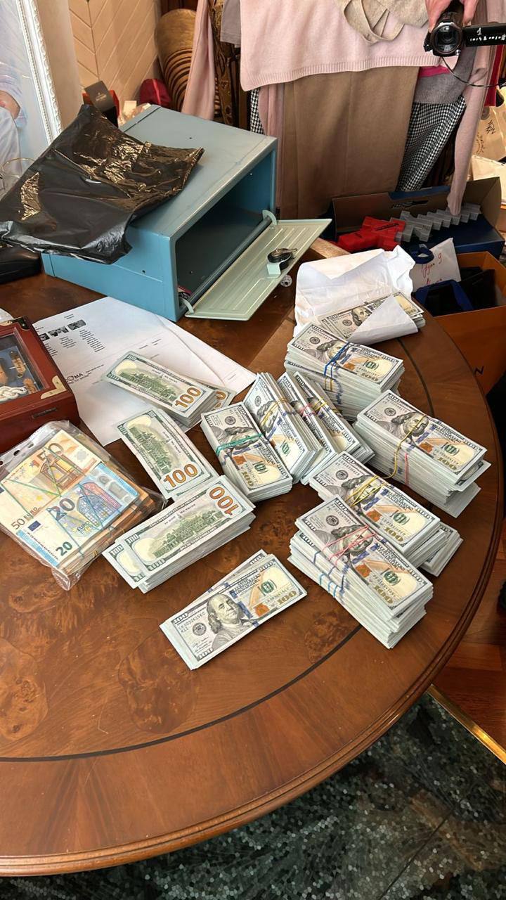 Кроме того, дома у чиновников работники ГБР обнаружили почти 5 млн 244 тыс. долларов США, 300 тыс. евро, более 5 млн грн, брендовые украшения и драгоценности. Правоохранители находили деньги в квартире практически в каждом уголке – в шкафах, ящиках, нишах. Также изъяты документы, подтверждающие незаконную деятельность должностных лиц и отмывание ими денег через разные бизнес-проекты.