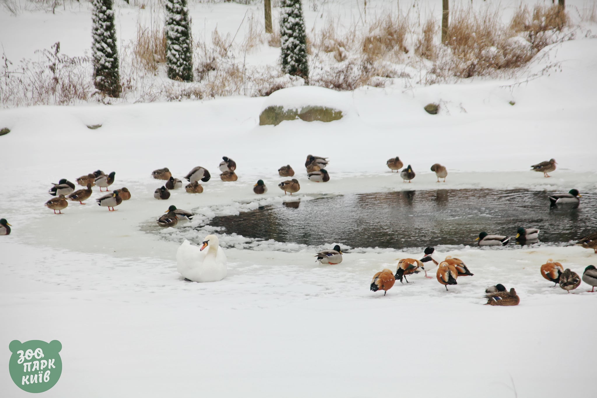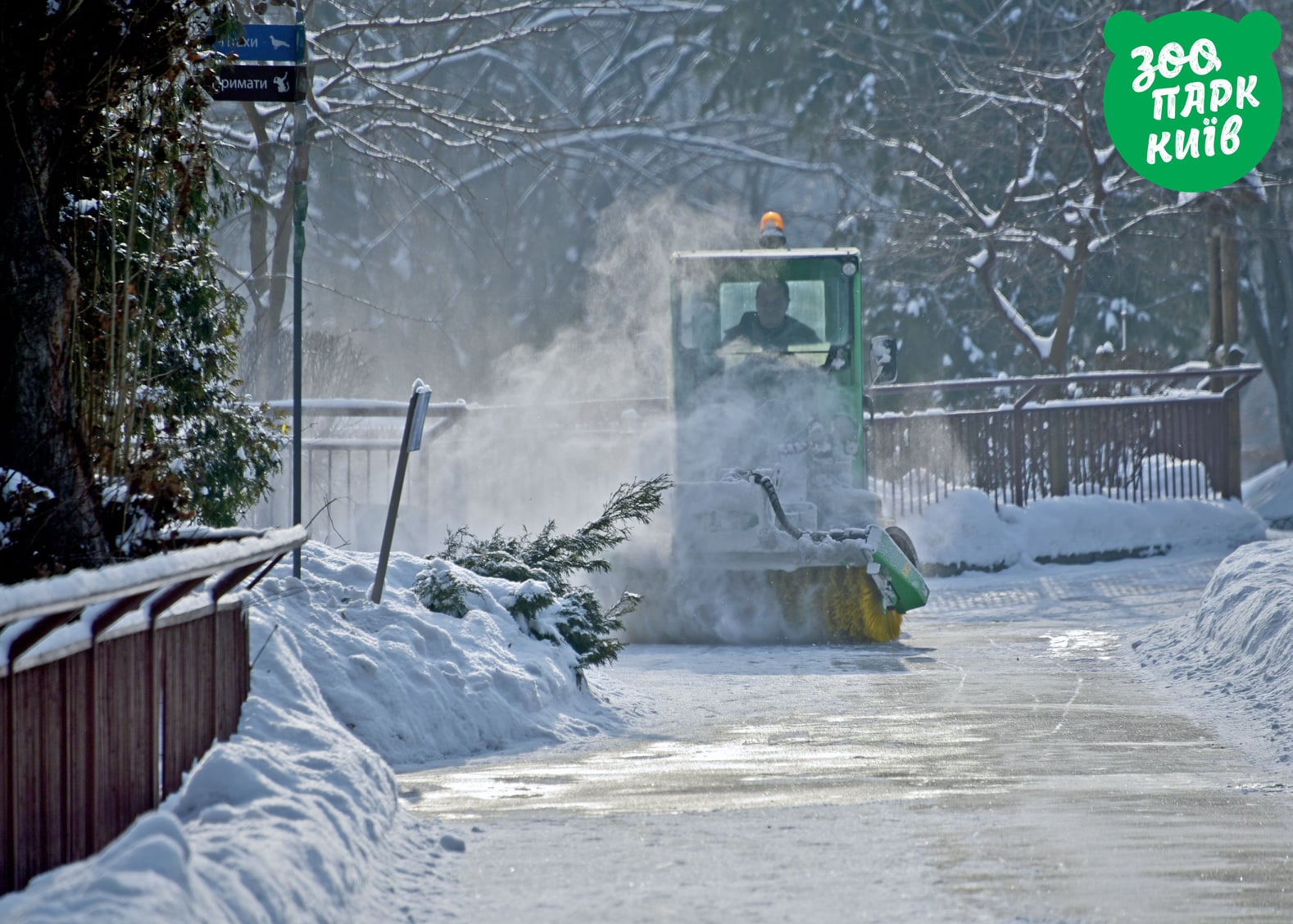 Кроме фото животных работники показали также, как снегоуборочная техника расчищает дорожки в парке, а также виды заснеженного Киева.