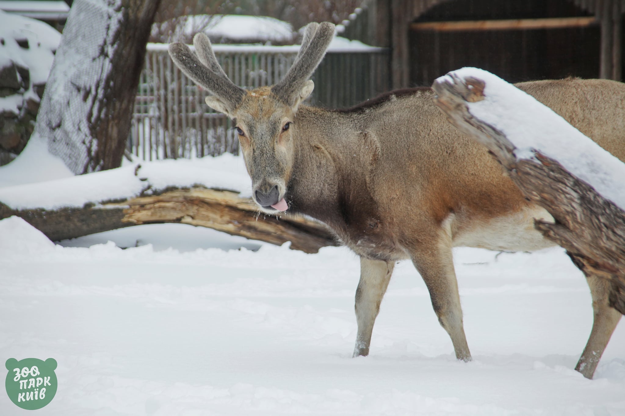 В Киевском зоопарке дикие животные с радостью встретили снег, который нанес множество хлопот коммунальщикам.