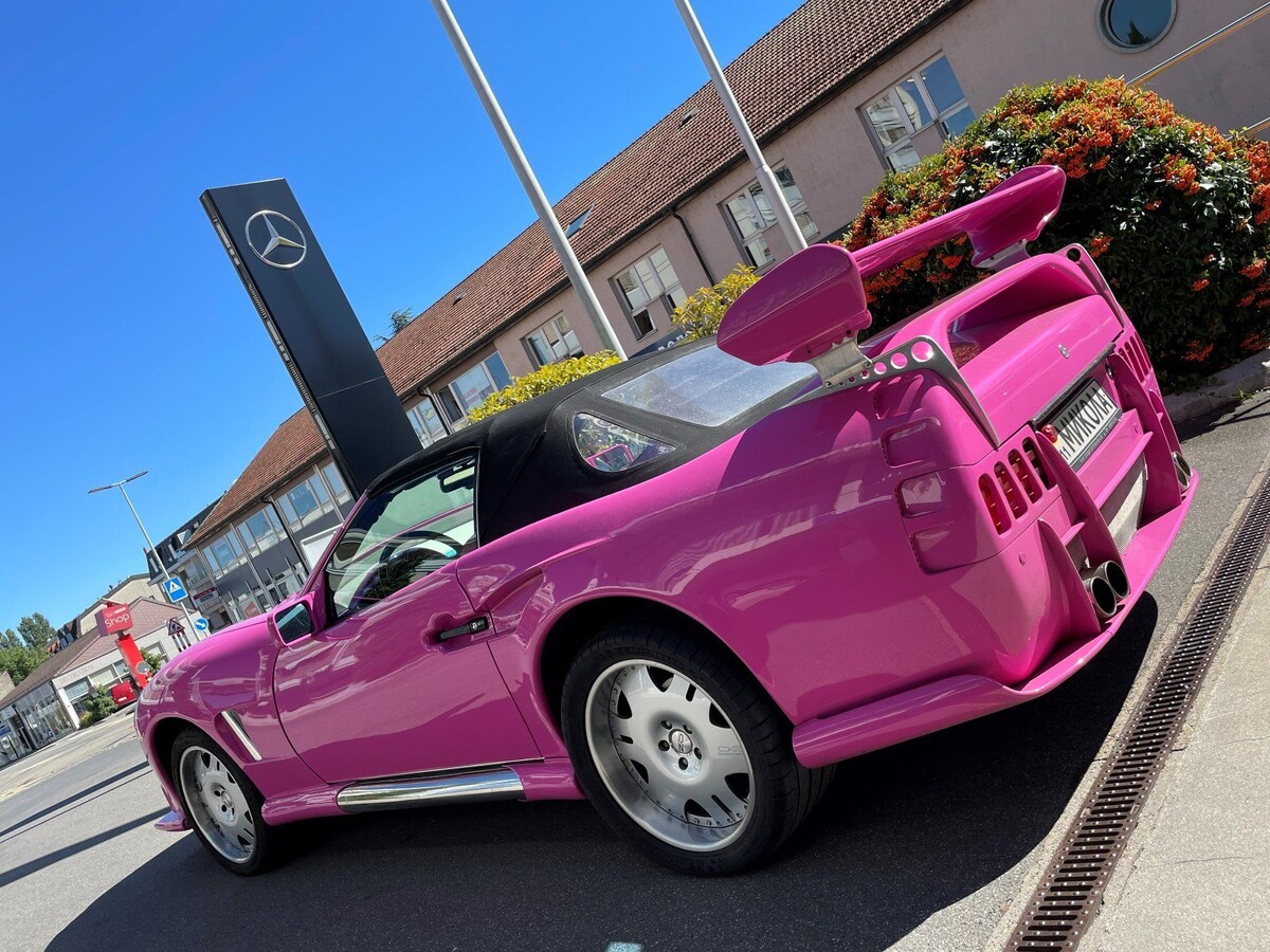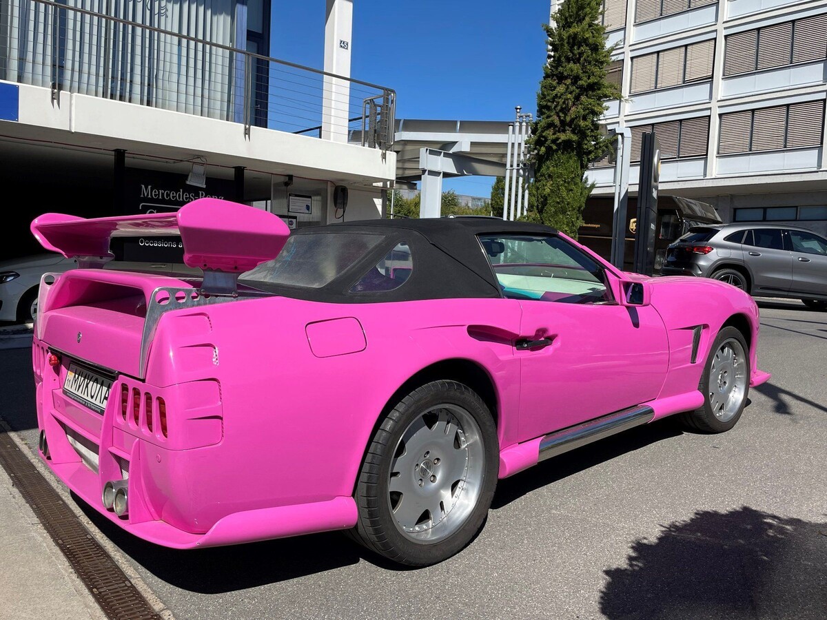 Роскошный Mercedes Sbarro SL Roadster, окрашенный в ярко-розовый цвет, ранее неоднократно видевшийся на улицах Киева, выставили на продажу на швейцарском сайте Ricardo.