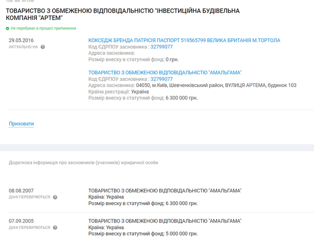 Одним из учредителей ООО «Инвестиционно-строительная компания «Артем»», которая, в частности, занималась строительным бизнесом, касающимся «Артем-банка», было общество с ограниченной ответственностью «Альмагама». Адрес его прописки совпадает с головным офисом «Артем-банка» на улице Сечевых Стрельцов, 103. Это же помещение, к слову, до сих пор находится в собственности Льва Гольдберга.