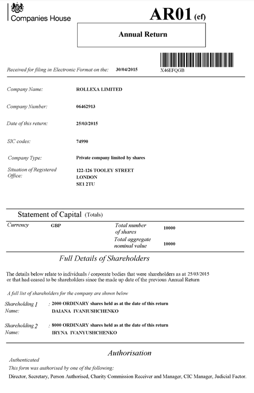 Кристина Палала работала в еще одной британской фирме - Addison Alliance Limited, которая из-за довольно длинной цепочки связей ведет к компании Rolexa Limited. Согласно отчетности, опубликованной в марте 2015 года, владельцами компании были Ирина и Диана Иванющенко. Это жена и дочь эксдепутата Верховной Рады Юрия Иванющенко.