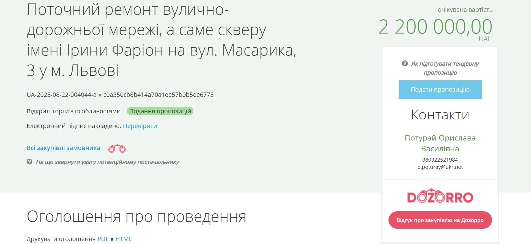 Скриншот: Прозорро
