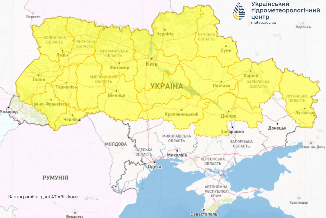 Синоптики объявили I уровень опасности, желтый. Данные: Укргидрометцентр