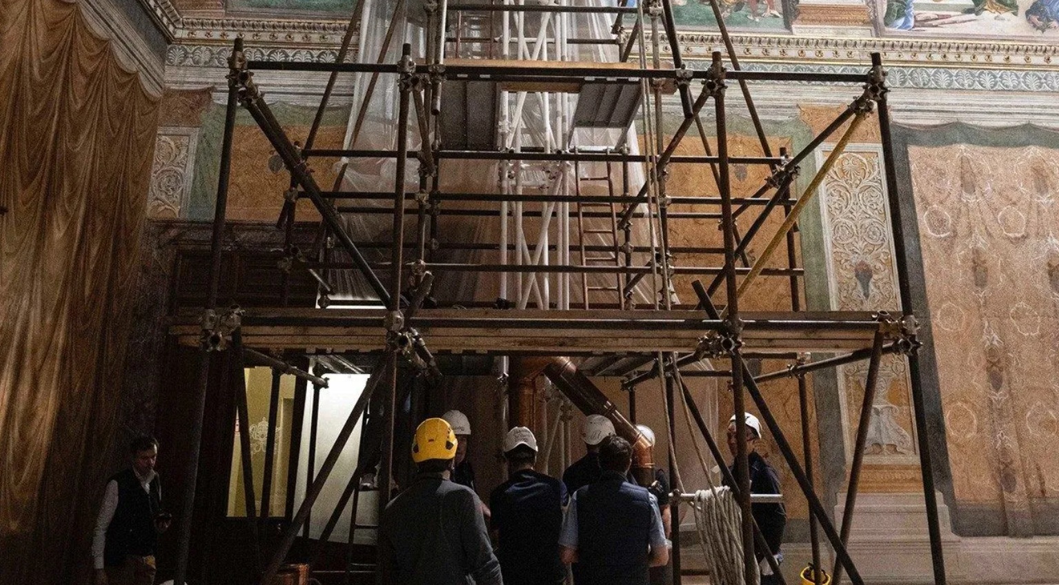 Пресс-служба святого престола на сайте Vatican Media показала, как рабочие устанавливали известный дымоход — внешний символ конклава, сообщающий миру о ходе и результате голосования, а внутри капеллы XV века – маленькую печь.