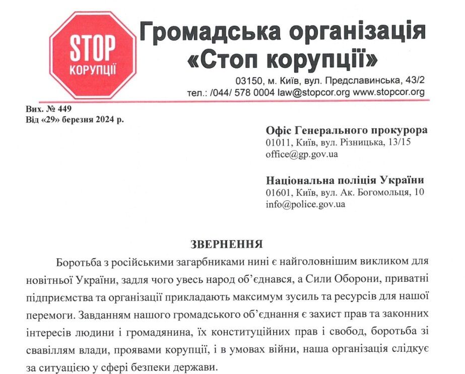 Согласно требованиям Закона "Об обращениях граждан" и "Об общественном объединении", общественная организация "Стоп Коррупции" просит офис Генерального прокурора провести проверку приведенных фактов и сообщить о результатах расследования.