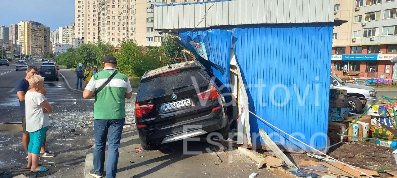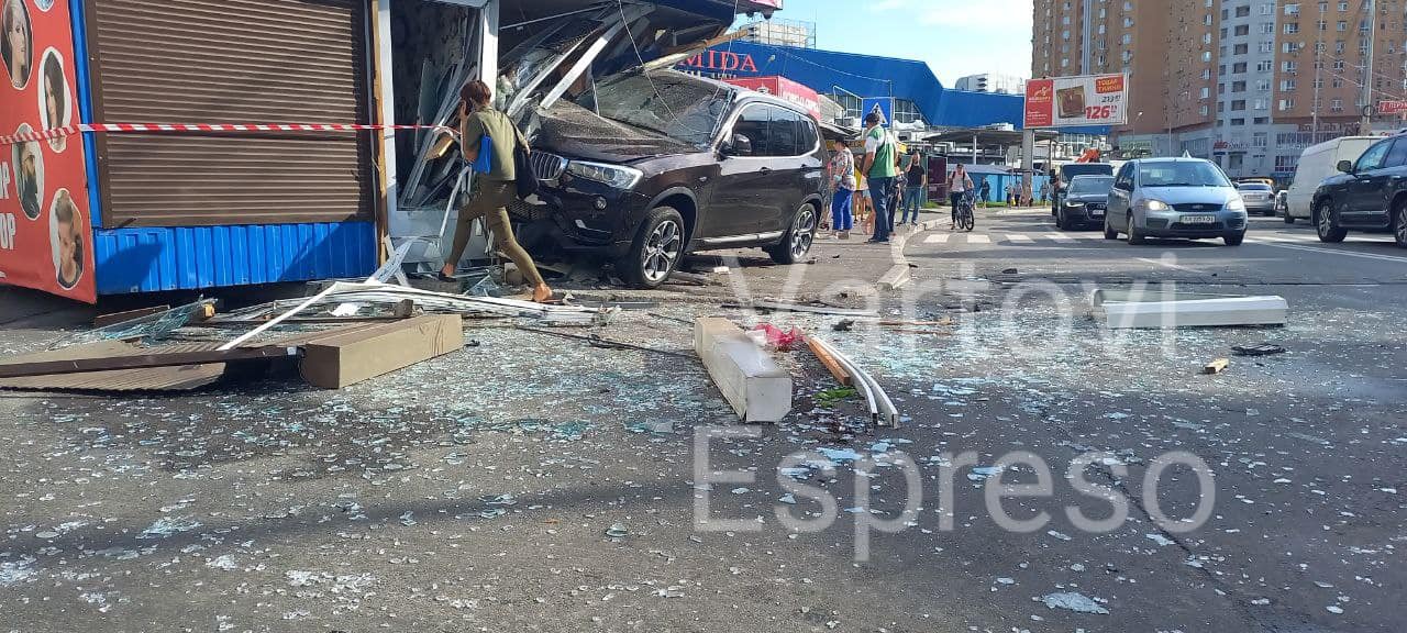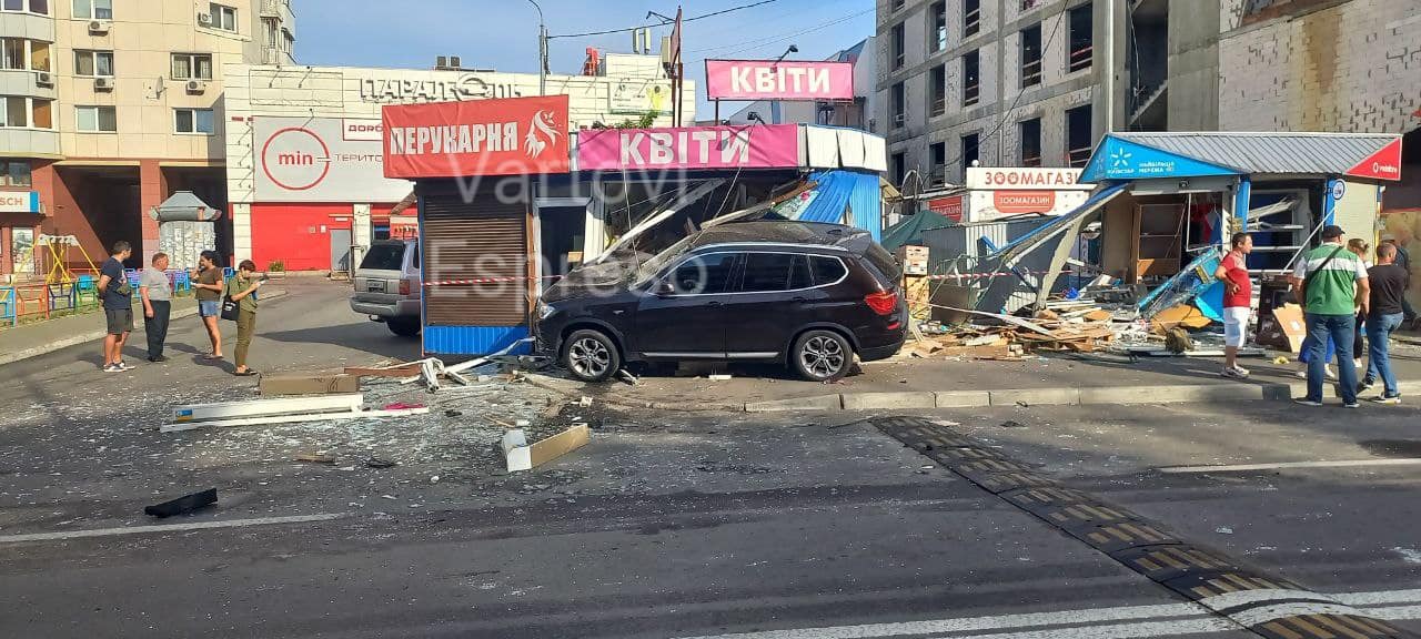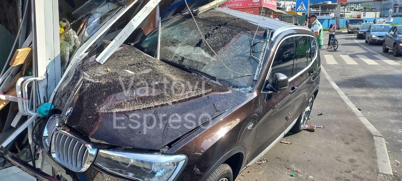 Как сообщают "Вартові Еспресо", водитель BMW Х5 двигался по улице Александра Мишуги, не справился с управлением, вылетел на бордюр, а затем протаранил киоск. Автомобиль понесло дальше и он протаранил еще один торговый павильон.