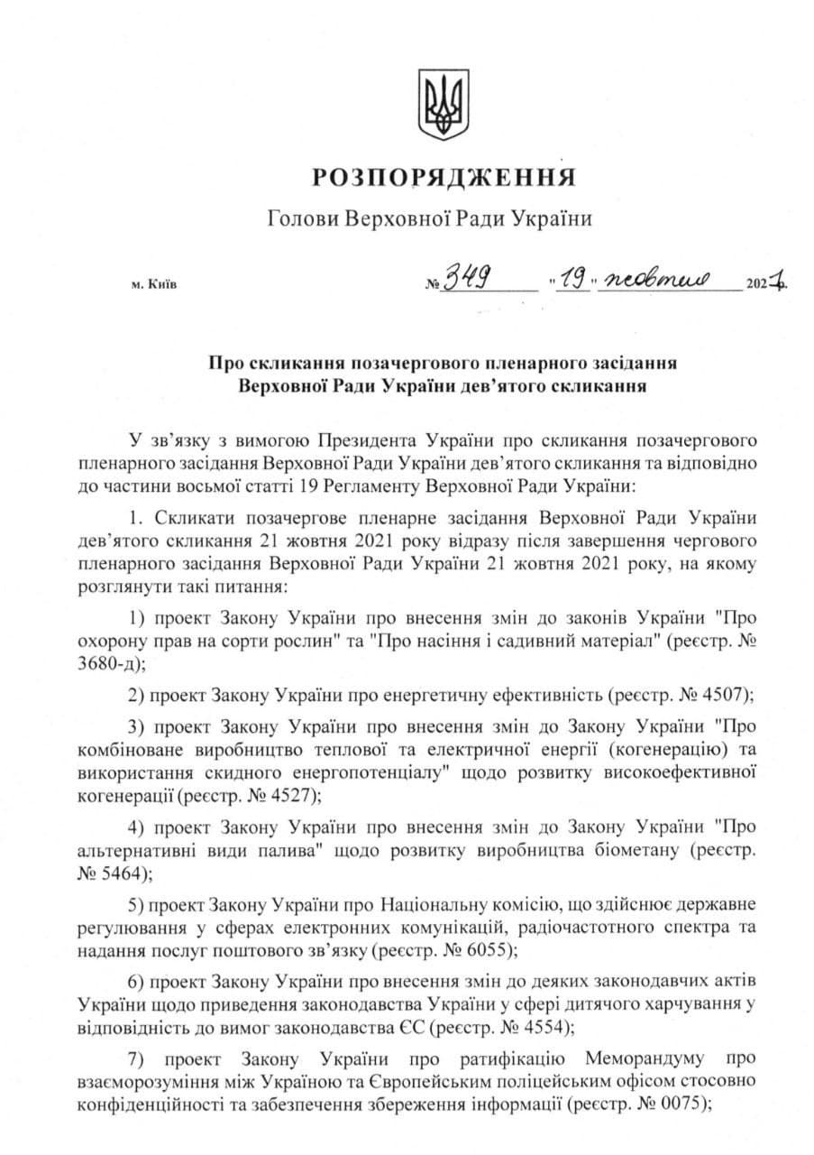 Президент Владимир Зеленский созывает внеочередное заседание Верховной Рады.