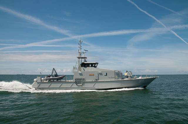 Справка. FPB 98 MKI – это маневровый патрульный катер длиной более 30 метров из легкого алюминия, развивающий скорость до 30 узлов с дальностью плавания 1200 морских миль с малой осадкой для плавания на мелководье.