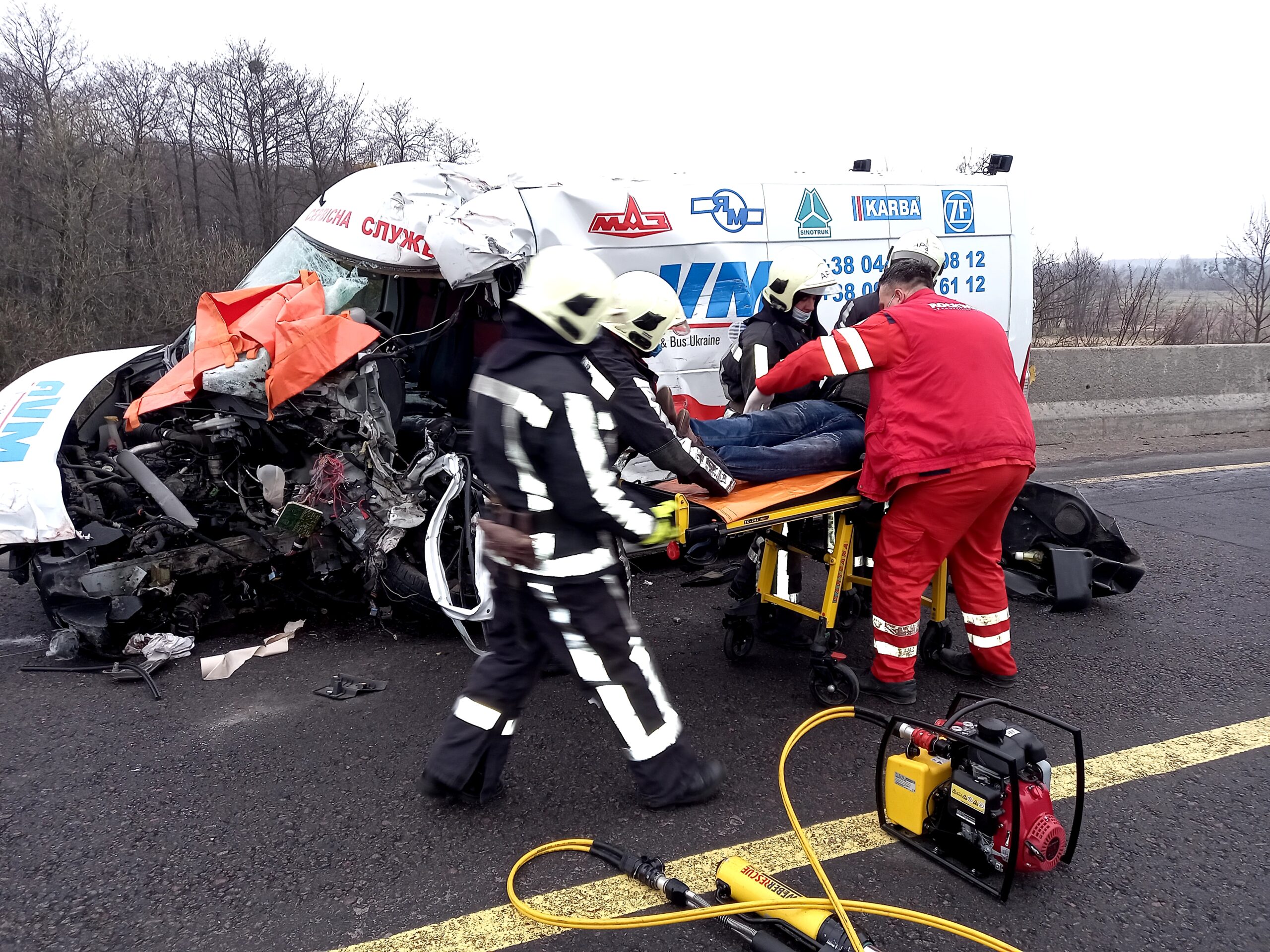 Как сообщает Государственная служба по чрезвычайным ситуациям, 13 апреля на 87 километре трассы автодороги автомобиль Lada столкнулся с бензовозом Mercedes-Benz. Одного из водителей пришлось вырезать из искореженного авто.
