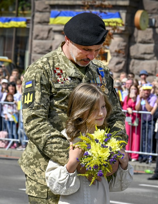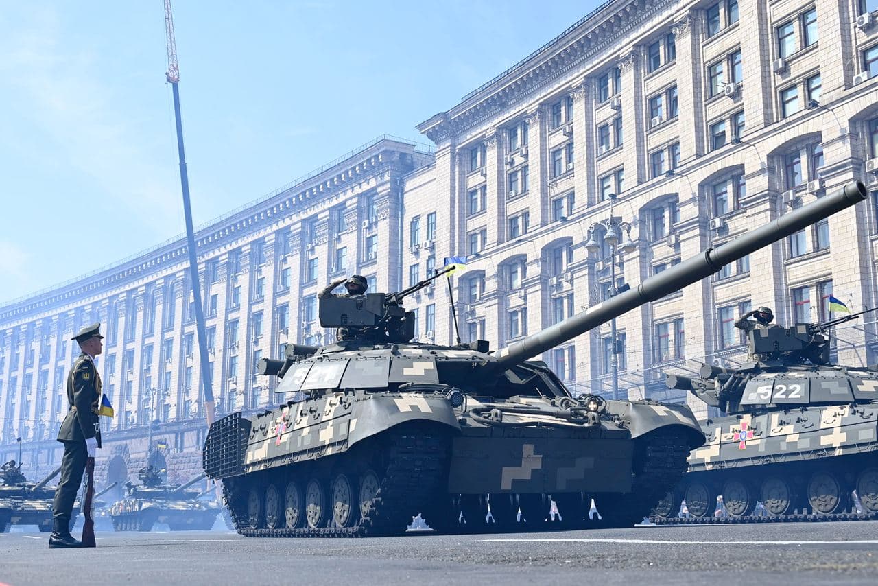 Во время самого парада по Крещатику и Майдану Независимости проехала военная техника сил безопасности и обороны Украины и государств-партнеров, прошло около 5000 военных. Большинство военнослужащих в расчетах - это участники боевых действий. В небе пролетела военная авиация.