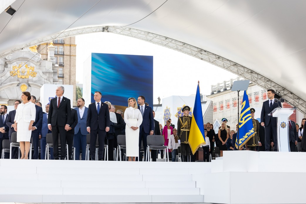 На торжествах присутствовали президент Украины Владимир Зеленский (досье Владимира Зеленского) с женой, бывшие президенты Леонид Кучма, Виктор Ющенко и Петр Порошенко с супругой Мариной, народные депутаты, министры, аппарат Офиса президента, иностранные делегации.