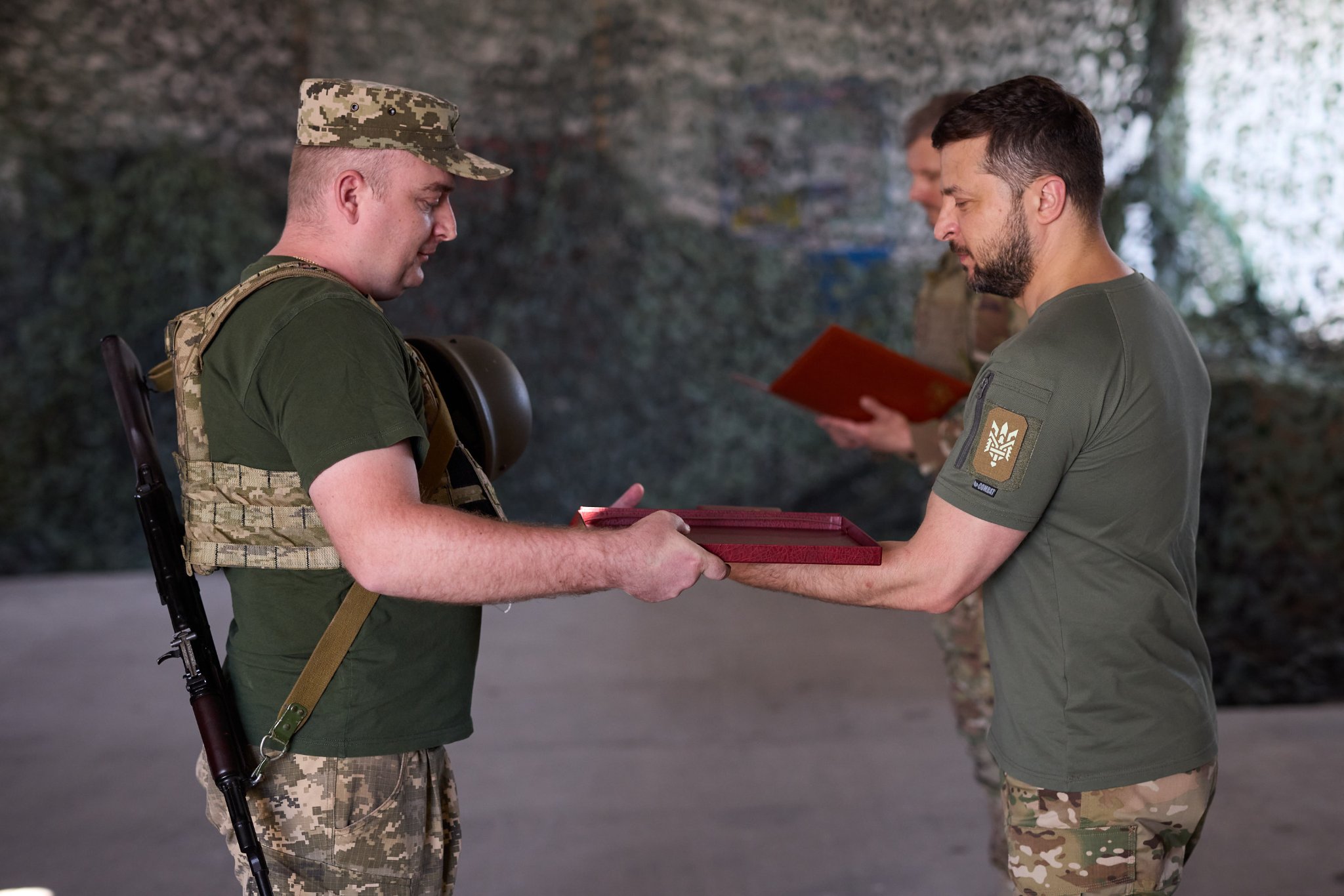Передовые позиции в Днепропетровской области. Общался с нашими защитниками, вручил им награды. Настроение у них решительное, в глазах – уверенность в нашей победе. Спасибо, что боретесь за свободу Украины! – сказал Владимир Зеленский.