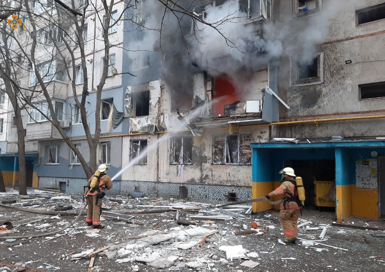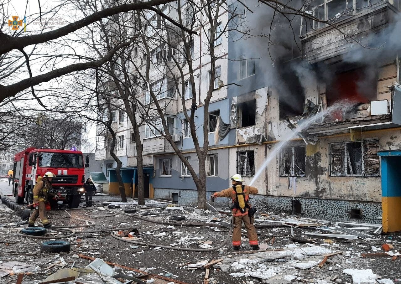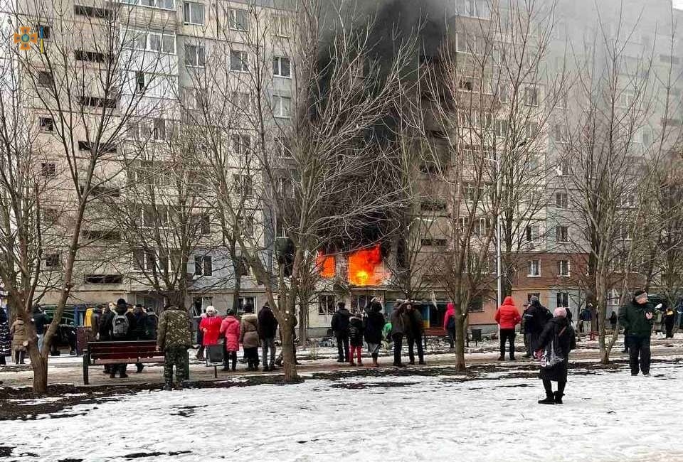 В городе Кропивницкий (Кировоградская область) в девятиэтажке произошел мощный взрыв, в результате чего загорелась одна из квартир на втором этаже.
