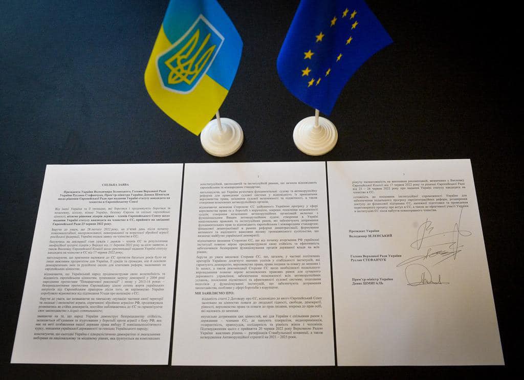 Председатель Верховной Рады Руслан Стефанчук сообщил, что в заявлении говорится: Украина сделает все, чтобы стать полноправным членом Европейского Союза.