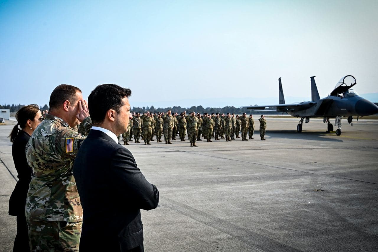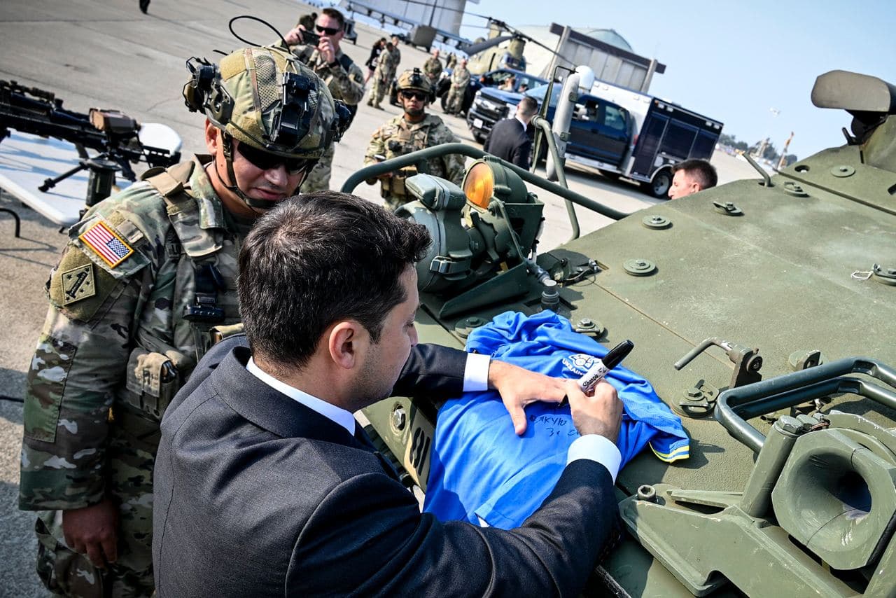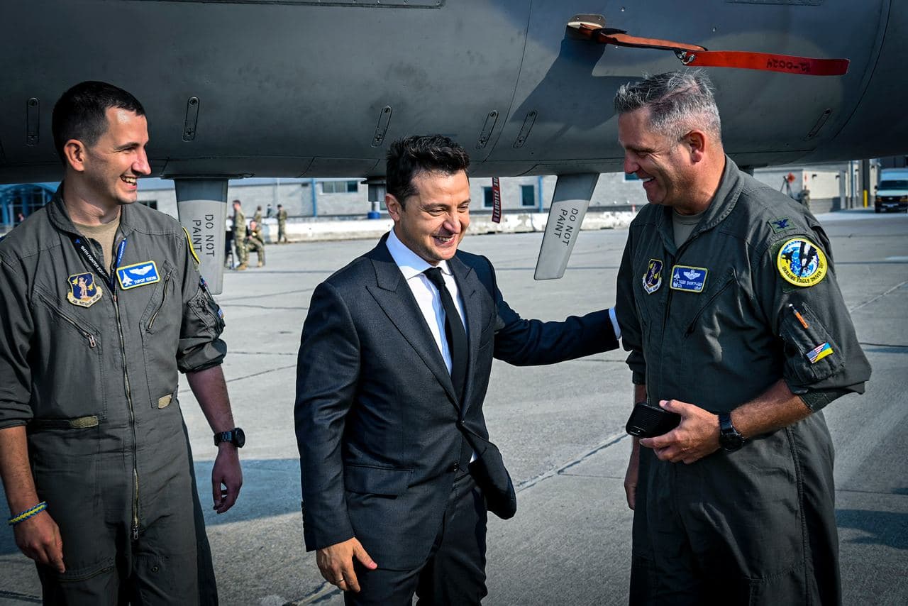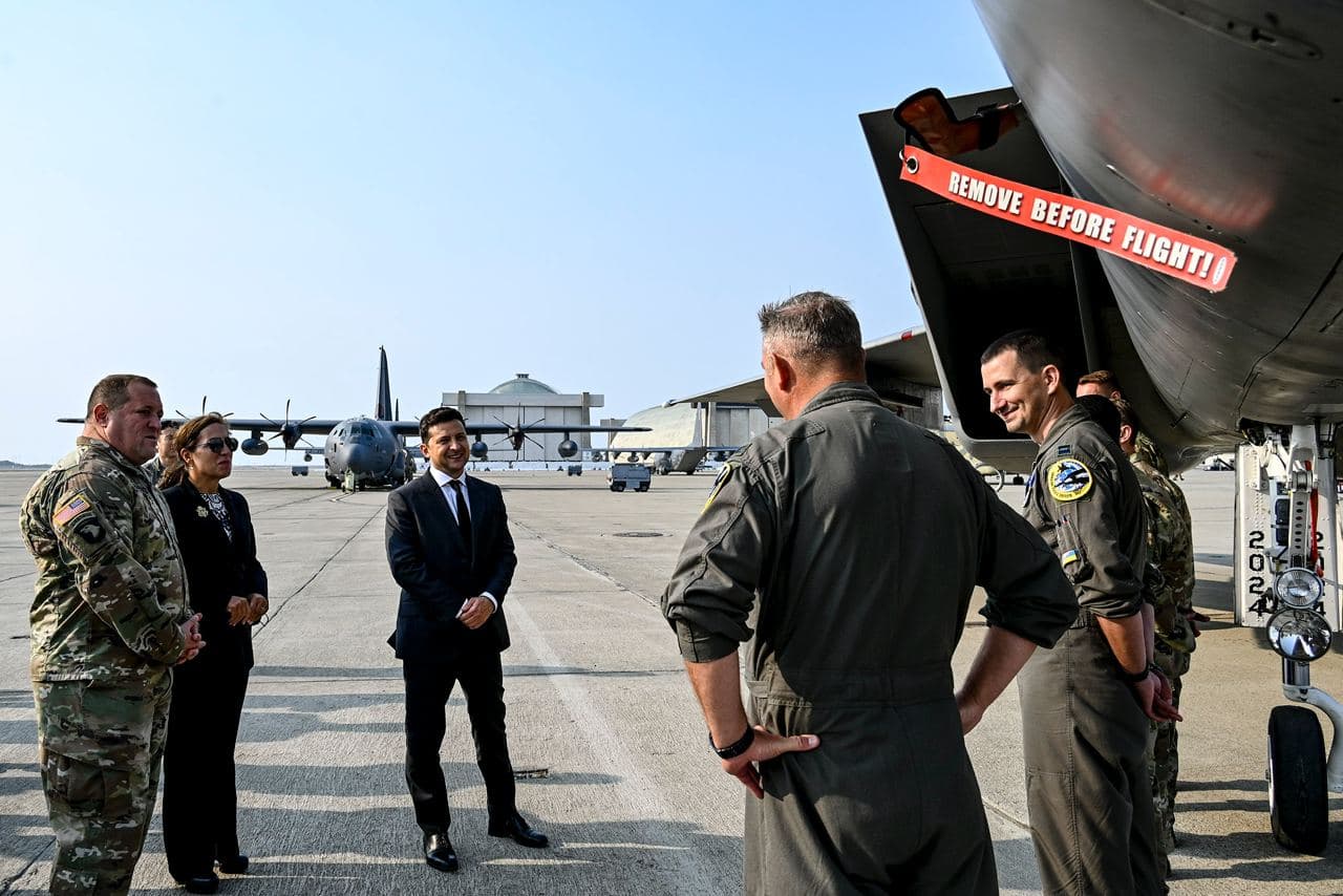 Президент Украины Владимир Зеленский во время визита в Калифорнию посетил авиабазу Моффет-Филд Национальной гвардии.