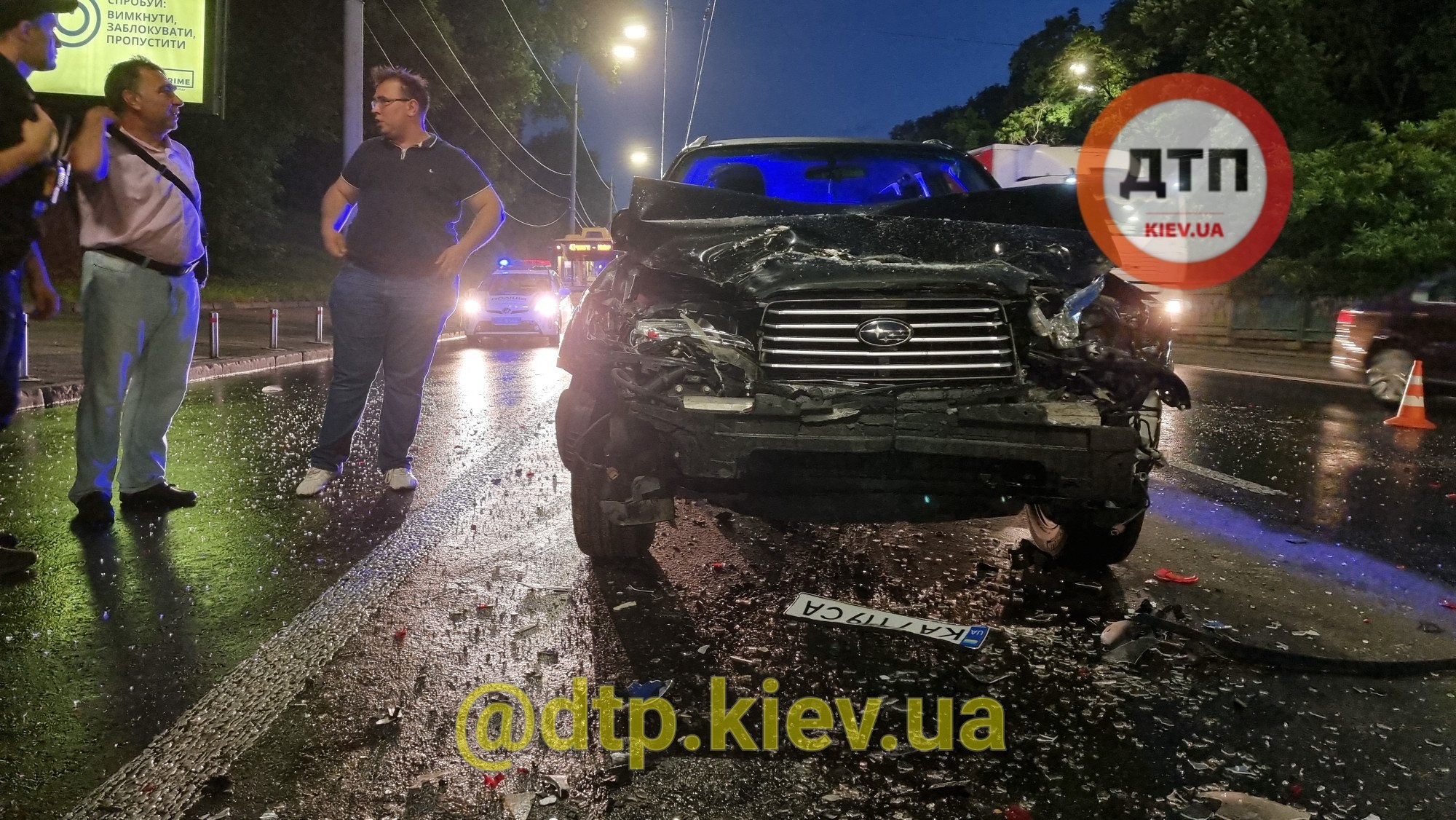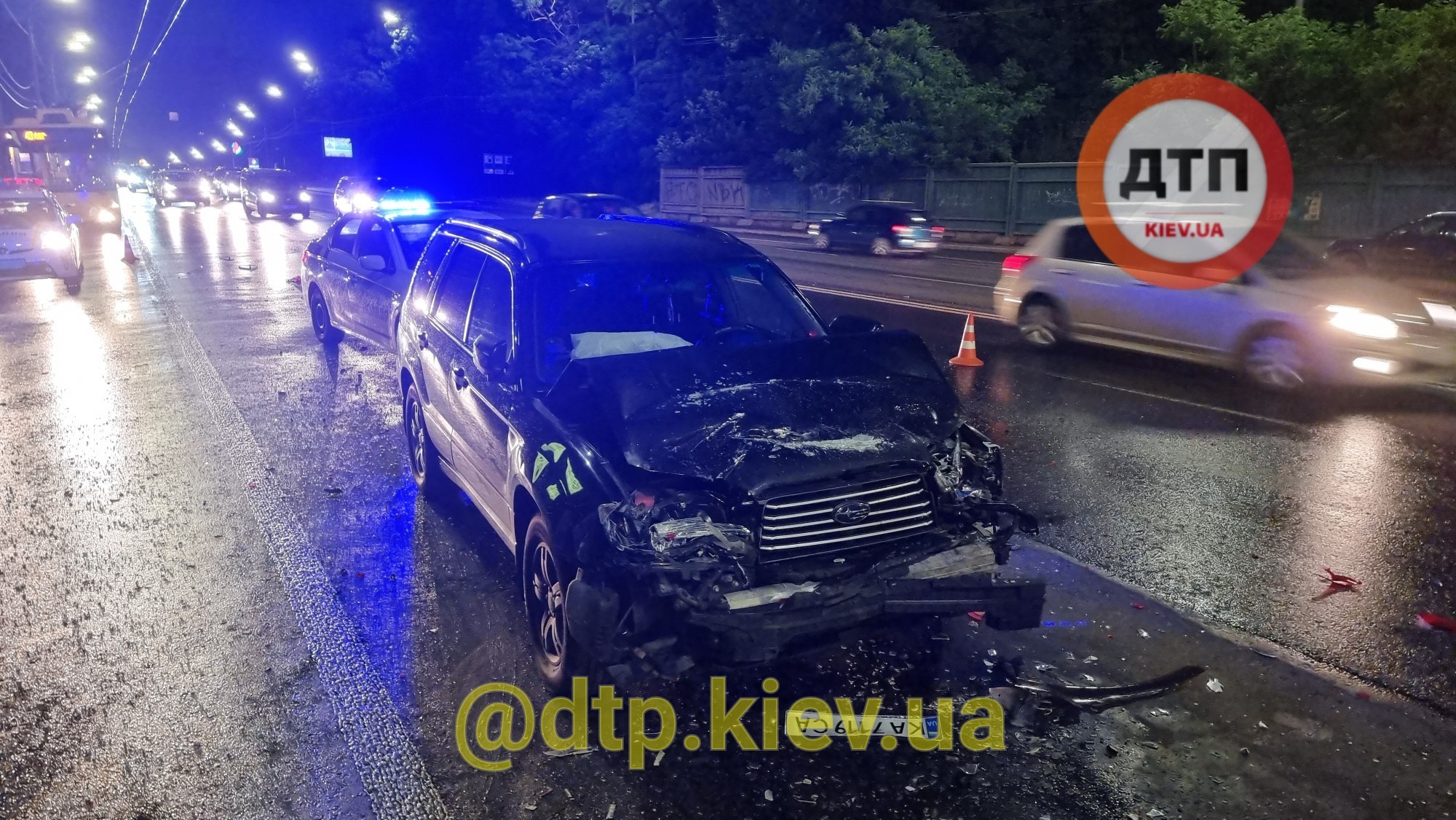 В Киеве во время оформления аварии с участием двух авто водитель Subaru протаранил автомобили участников ДТП и транспорт аварийного комиссара.
