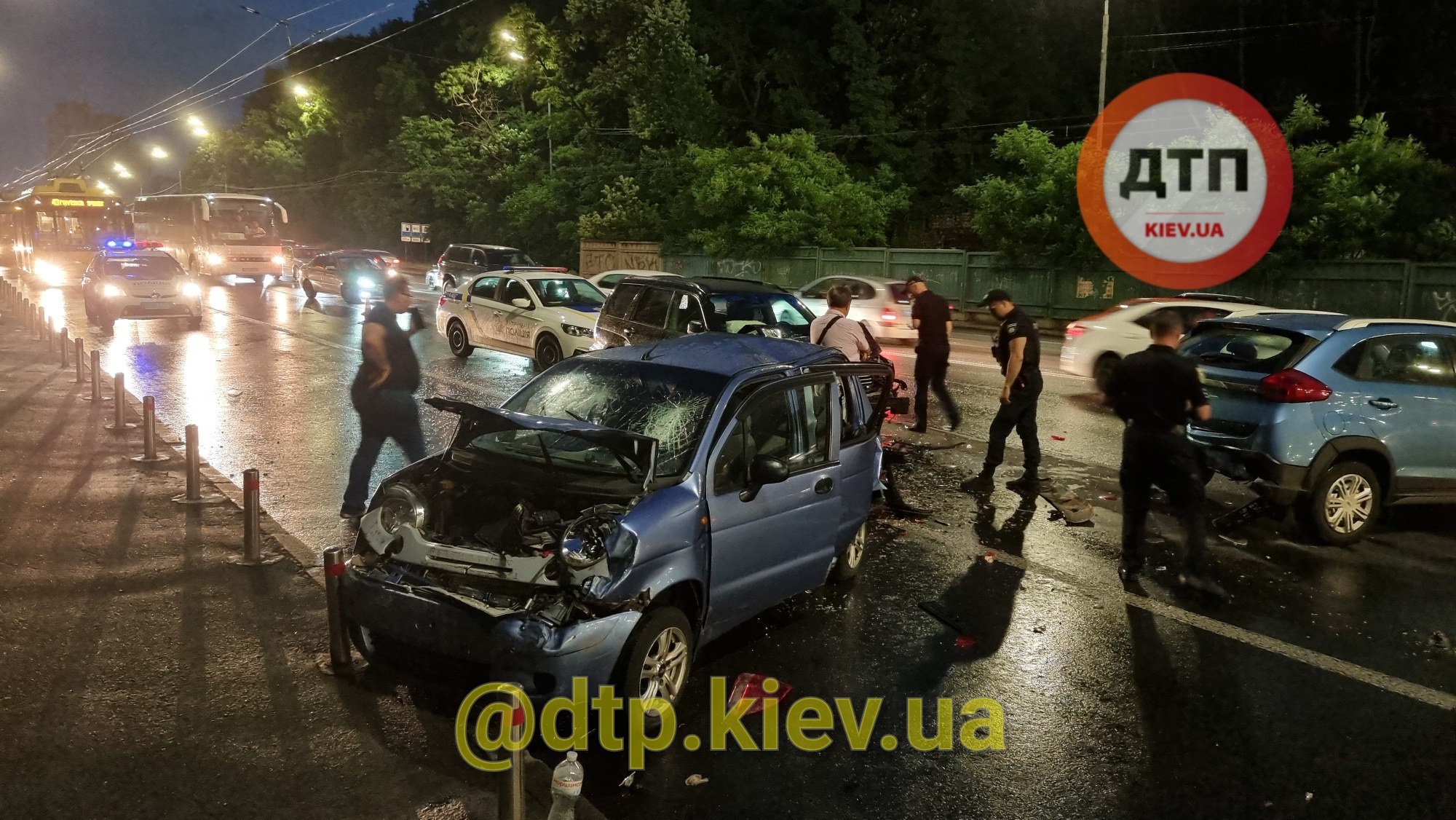 Шел дождь, мать с детьми сидели в авто, все получили серьезные травмы и были срочно госпитализированы. На месте работает СОГ. Известно, что дети доставлены в Охматдет, живы.