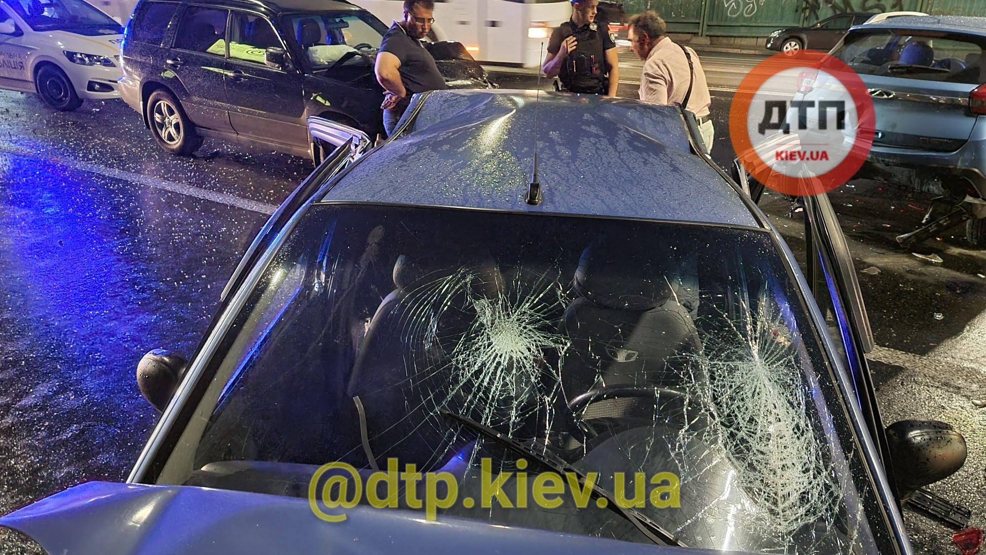 Женщина-водитель Daewoo Matiz поцарапала Chery Tiggo, встали, приехал аварийный комиссар для оформления ДТП и тут сзади на полной скорости, не тормозя, влетает Subaru, тараня все три авто. Шел дождь, мать с детьми сидели в авто, все получили серьезные травмы и были срочно госпитализированы, - говорится в сообщении.